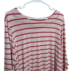 Chico's Shirt Women's 3 Red Striped Round Neck 3/4 Sleeve XL Casual Top