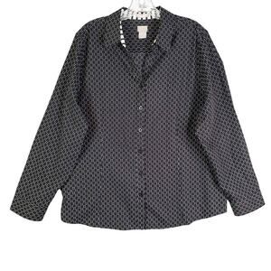 Chicos Shirt Women’s Button Down Long Sleeve Size 3 US XL Black Geometric