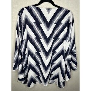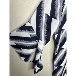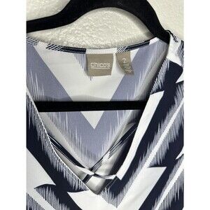 Chico's Shirt Womens Large 2 Blue White Chevron Bell Sleeve Crisscross V Neck