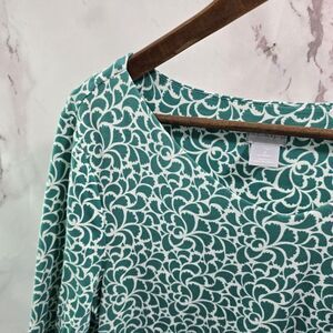 Chicos Shirt Womens Large 2 Green White Half Quarter Sleeve Stretch Scoop Tee
