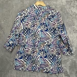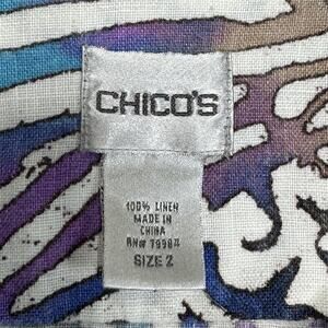 Chico's Shirt Womens Large Purple Blue Linen Button Front Abstract 3/4 Sleeve