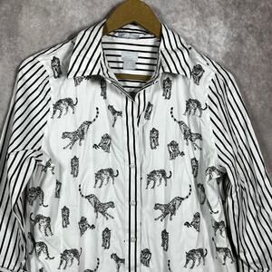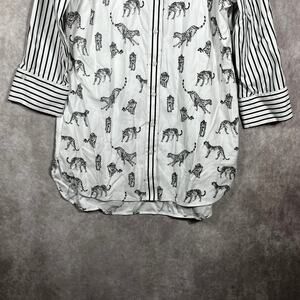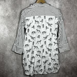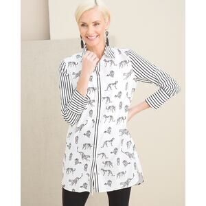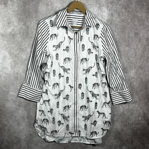 Chico's Shirt Womens Size 0 US 4 White Cheetah Print Striped No-Iron Tunic