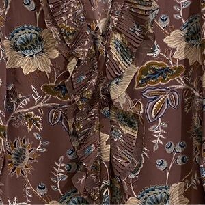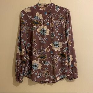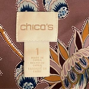 Chicos Shirt Womens Size 1 (S) Ruffle Front Button Up Blouse Rose Floral Top