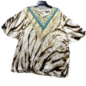 Chico's Shirt Womens Size 2 Large Rhinestone Embellished Vintage Blouse Tropic