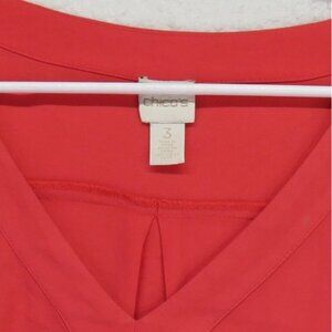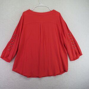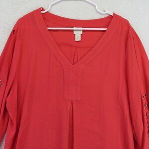 Chicos Shirt Womens Size Extra Large Red Lace Up Sleeve V Neck Tunic Blouse