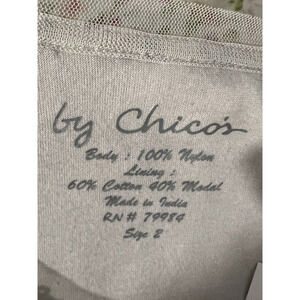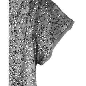 Chicos Shirt Womens Size M Sequins Short Sleeve Sheer Lined Silver Gray NWT