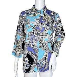 Chicos Shirt Womens Small 0 Multicolor Paisley Button Up Casual Office Career