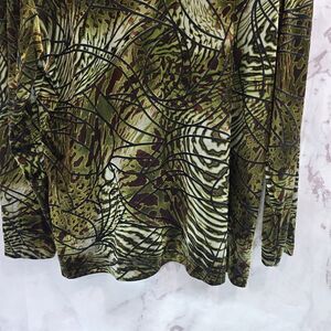 Chicos Shirt Womens XL 3 Green Velvet Burnout Plant Animal Print Blouse Vintage