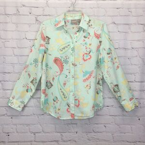 Chico's Shirt/Blouse Size 0/XS Paisley Floral Stretch Button Up Roll Tab Sleeves