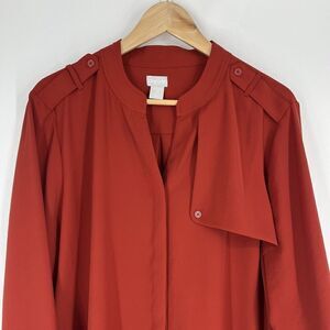Chicos Shirt Size 3 Womens16/18 Red Button Up Epaulette Shoulder Flap Blouse Top