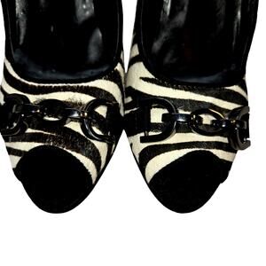 Chico's Shoes 7.5 Zebra Print Buckles Platform Open Toe High Heel Pump Stiletto