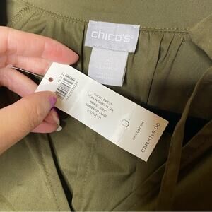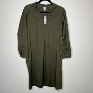 Chicos Short Dress Poplin Shift Amber Olive Green Long Sleeve Pockets Size 0 NWT