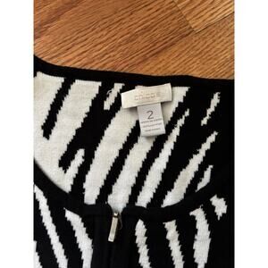 Add a touch of sophistication to your wardrobe with this stylish Chico's cardigan. The black and white animal print pattern is perfect for any occasion, while the full zip design adds a modern touch. The short sleeves and cotton material make it ideal for a comfortable and casual look. This sweater is a must-have for any fashion-forward woman. Size 2 (Medium)