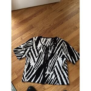 Chicos Short Sleeve Cardigan Black White Full Zip Size Medium Cotton