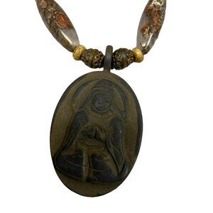 Glass Beads with Meditating Women Stone Pendant