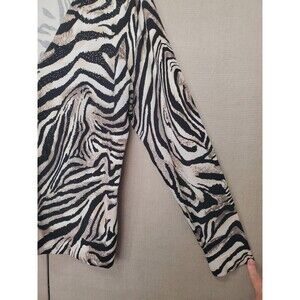 This is a Chico's Silk Blend Animal Print Studded Long Sleeve Button-Up Cardigan Size 2 LG