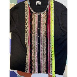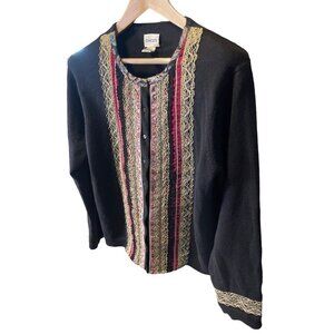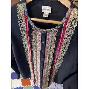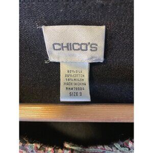 Chico's Silk Blend Black Embroidered Detail Cardigan Sweater Sz XL
