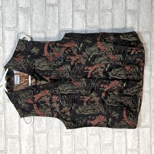 Chico's Silk Blend Black Red Asian Inspired Button Up Vest size 1 Medium