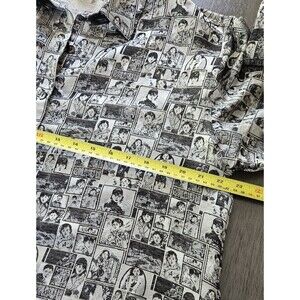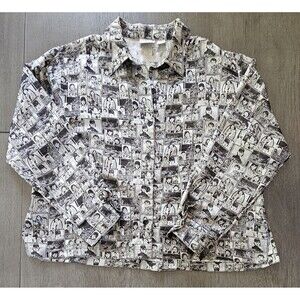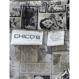 Chicos Silk Blend Cinema Blouse Top Button Front Silver Black Size 2 M 12 Boxy