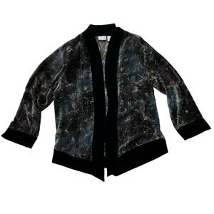 Chico's Silk Blend Floral Flocked Velvet Burnout Jacket Size 2/M Whimsy Goth