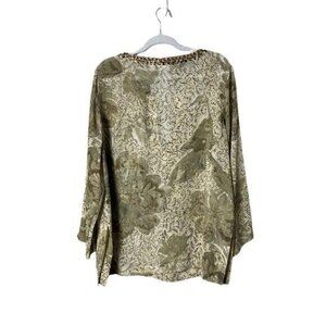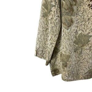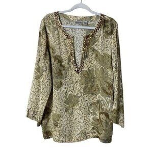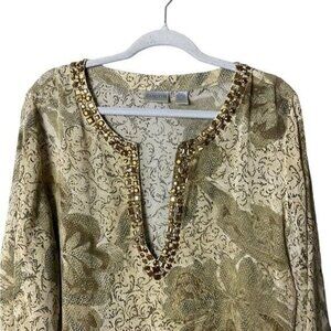 Chicos Silk Blouse Large Floral Artsy Embellished Fairycore Bohemian Whimsigoth