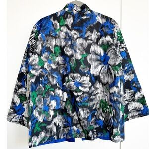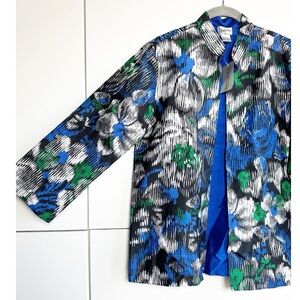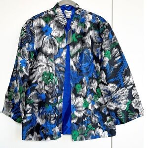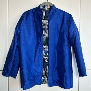 Chicos Silk Jacket Reversible Floral Blue Size 0 (Small) NWT 3/4 Sleeves