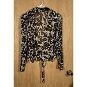 Chicos Silk Leopard Print Blouse Front Tie Long Sleeve Boho Sheer Women's Sz M. Condition is Pre-Owned. Blouse is in great vintage pre-owned condition with a minor run in silk by the right wrist (see picture). Does not affect aesthetic. Size 2. Please see all pictures for measurements and ask any questions before purchase. Item is stored in a clean smoke free environment. Thank you so much for shopping my Closet:) I do offer 15% off 2 or more items, so if you see a couple items make a bundle and make a deal:) New items added weekly:)