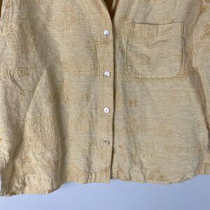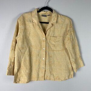 Chicos Silk Linen Embroidered Button Up Shirt Womens 1 US M Yellow Boxy 3/4 Slv