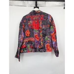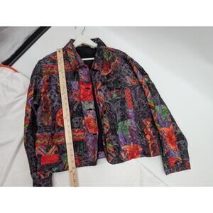 Chico's Silk Linen Multicolor Jacket Pockets Women's 2 - Large Art to Wear