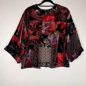Chicos Silk Velvet Burnout Patchwork Kimono Top Cardigan Size 0 Womens S