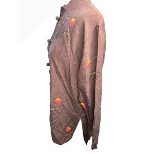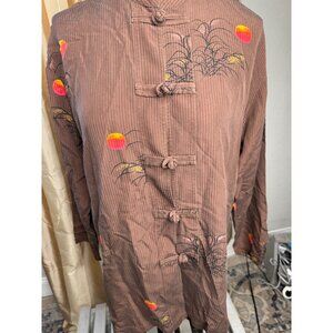 Chicos Silk kimono Artsy Asian-Inspired print 1 Mandarin Collar Long Tunic Y2k