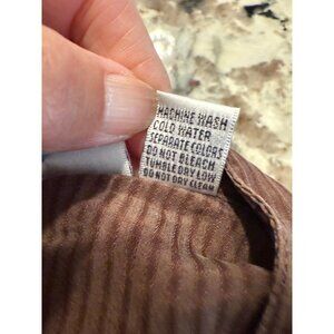 This elegant tunic from Chico's is crafted in a rich brown hue with an Asian inspired design The mandarin collar and button closure exude a sophisticated Asian-inspired style. Suitable for various occasions, it offers comfort and a unique aesthetic that stands out in any wardrobe.