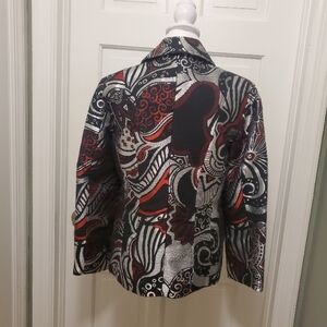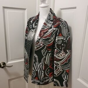 Chico's Silver Metallic Contemporary Geometric Print blazer/Jacket Size 0=8