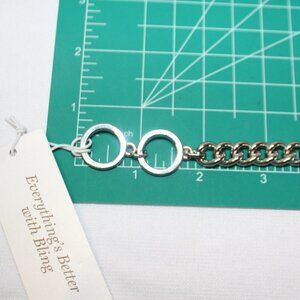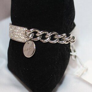 CHICO'S SILVER TONE CHAIN LINK BRACELET WITH Sparkling CRYSTALS TOGGLE CLASP that allows it to fit size 7" - 8".