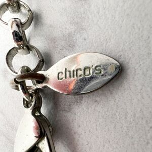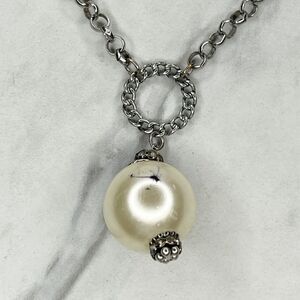 Chico's Silver Tone Chain Link Faux Pearl Rhinestone Pendant Necklace