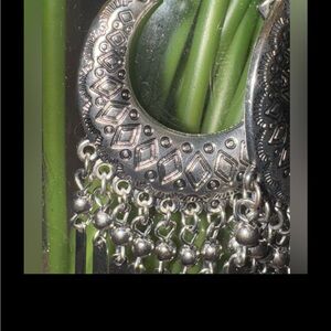 Chico's Silver Tone Crescent Dangle Earrings - Boho Chic Fringe