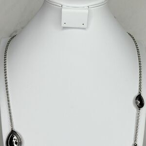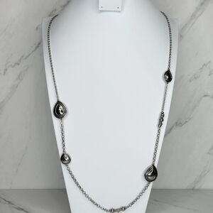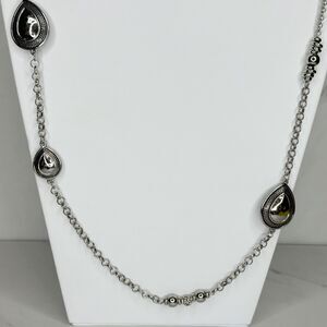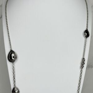 Chico's Silver Tone Hammered Metal Teardrop Station Long Chain Necklace ✨