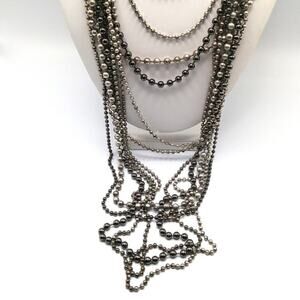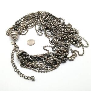 Chico's Silver Tone Metal Beaded Necklace, 12 Layered Strands, 23 Inches