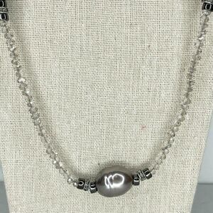 Chico's Silver Tone Metallic Beaded Station Rhinestone Long Necklace