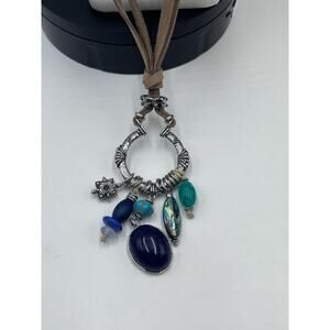 Chicos Silver Toned Blue Abalone Shell Green Beads Tan Suede Necklace