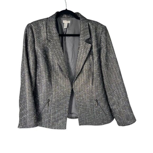 Chico’s Silver Boucle Single Clasp Blazer 2 L Women’s