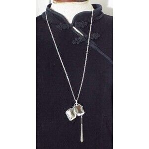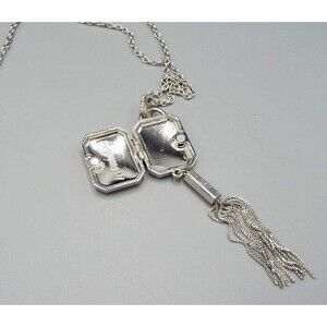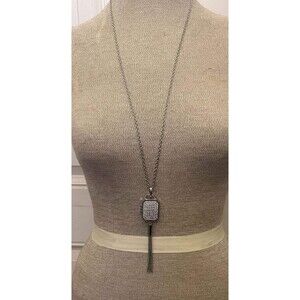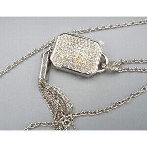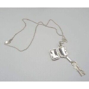 * Silver tone rolo chain crystal jeweled hanging tassel locket Miracles pendant necklace by Chico's 32" in total.