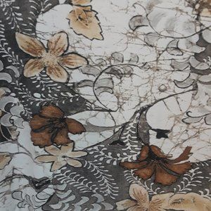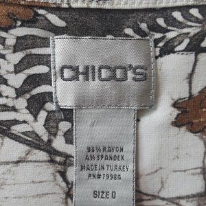Chico's Size 0 Women's V-neck Stretch Top Tan Gray Cream Floral Long Sleeve WS263