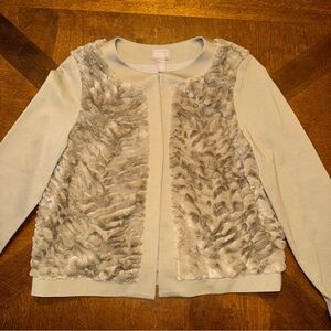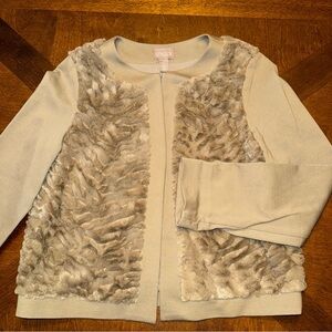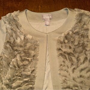 Chicos Size 0 Faux Fur Ponte Taupe Tan Jacket Cardigan Paneled Solid Small 4