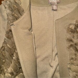 Chicos Faux Fur Ponte Taupe Tan Jacket Cardigan Paneled Solid in good preowned condition