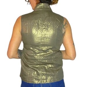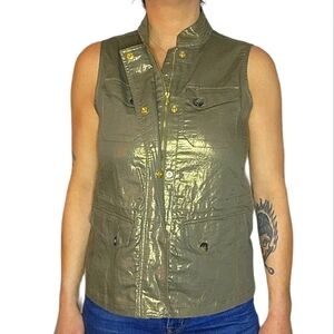 Chico's Size 0 Golden Linen Zip-Up Snap Button Vest