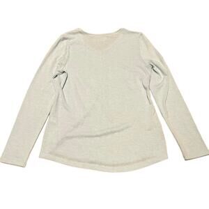 Chicos Size 0 Light Blue Top Tee Long Sleeve V-Neck Silver Accent Lightweight