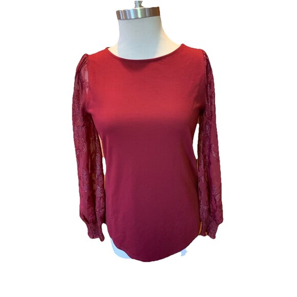 Chico’s Size 0 /Size XS Top Blouse Wine Jersey Knit Fairy Sparkle Excellent Cond