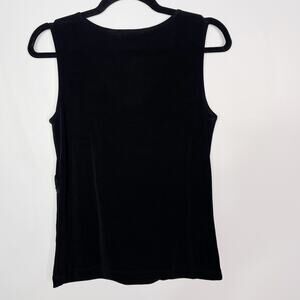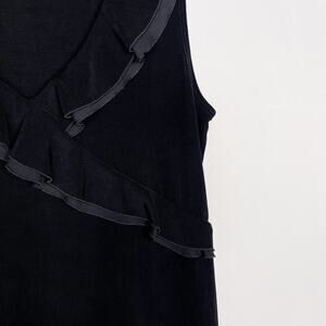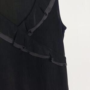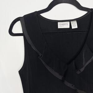 Chicos Size 0 Small Black Travelers VNeck Wrap Knit Shell Top Ruffle Trim Tank