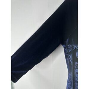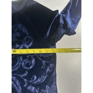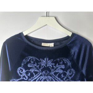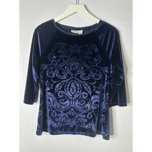 Chico's Size 0 Small Blue Velvet 3/4 Sleeve Top Embossed Paisley Jewel Tone
